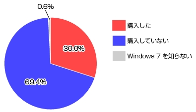 調査結果では、「Windows 7を購入した」割合は全体の3割。09年9月に実施した発売直前の調査では、「発売から半年以内に購入する」と回答した人の割合が21.2%だったことから、同社は、予想以上に導入はスムーズに進んでいる、と分析している。