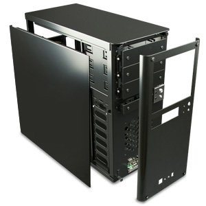 シャシー、カバー、フロントパネルに、環境にやさしいクロムフリー硬質スティールを採用。シャシーとカバーが密接に結びついた「モノコック」構造で、すぐれた剛性を実現した。さらに、カバーには厚さ4mmの制振シート、3.5インチベイには振動ノイズを抑制する制振パッドを装備し、制振性能を高めた。