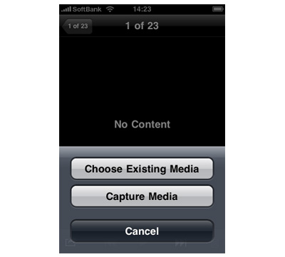 写真フィールドの編集で「Capture Media」を選択すれば、iPhone、iPod touch内蔵のカメラで撮影した写真をデータベースに格納できる