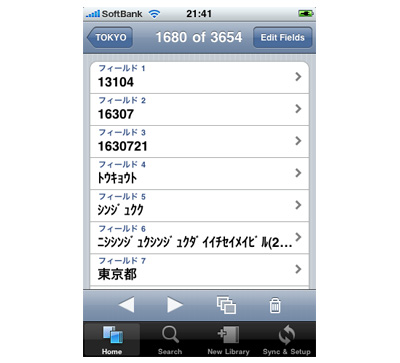 さらに、検索のスピード。数十件程度のデータベースであれば、ほぼ待ち時間なく検索結果が現れるが、レコード数が千件を超えるあたりからレスポンスの低下が気になりはじめる。もともとiPhone OSはアプリケーションが自由に使えるメモリ空間が狭い。そこで、インクリメンタルサーチ(逐語検索)を使用しているので、やむをえない部分ではあるが、なんらかの方法で改良してほしいところだ。(ライター・海上 忍)