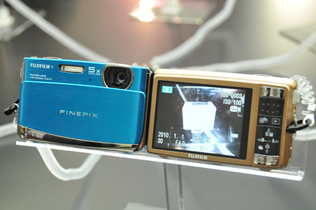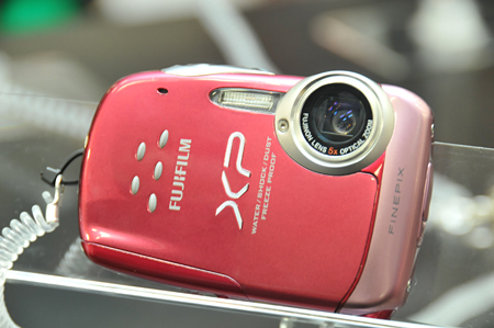 また、防水機能や耐衝撃機能などを強化したモデルとして「FinePix XP10」を投入。防水・防塵の保護規格「IP68」に準拠し、水深3mやマイナス10度の気温でも使用することができる。高さ1mからの落下にも耐える耐衝撃性や、砂やホコリを防ぐ防塵機能も備える。
