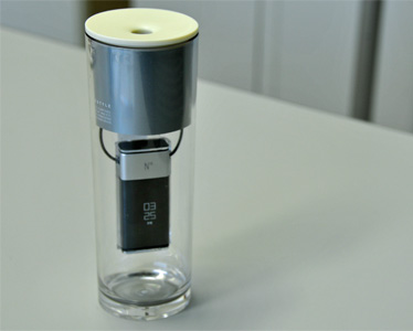「N15 JEWEL」のデザインコンセプトは、付属のアクリルケースまで及ぶ。オーディオプレーヤー本体の収納のほか、しゃれた花瓶やペン立てとしても使える。白いゴム製のフタだけで、一本のペンを立てることもできる。価格は4GBモデルが9980円、2GBモデルが7900円。