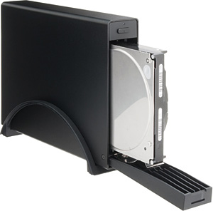 HDDは、ケースのフロントドアを開け、差し込むだけの簡単装着。本体サイズは幅37mm×高さ140mm×奥行201mm、重さは約505g。
