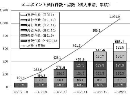 エコポイント発行点数、7か月間で累計1000億点超える、テレビが約8割