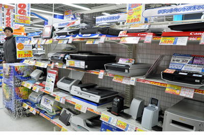 家電量販店のスキャナコーナーでは、通路際(写真奥)の目立つ場所にシートフィード型が置かれていた(ビックカメラ新宿西口店)