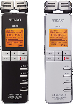 ティアックは、48kHz/24bitのリニアPCM(WAV)形式に対応したICレコーダー2モデルを、2月下旬から順次発売する。価格はオープン。ラインアップと実勢価格は、可動式マイクを採用した「VR-20」が1万8000円前後、無指向性マイクの「VR-10」が1万5000円前後の見込み。