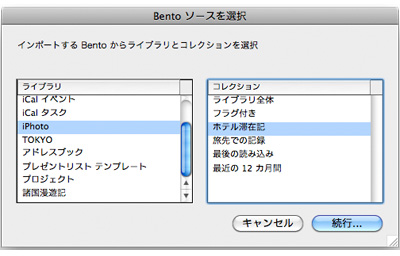個人向けデータベースソフト「Bento 2」「Bento 3」のデータベースをインポートできる