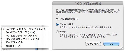 他のアプリケーションで作成したデータをもとに、データベースを新たに作成することもできる。最新バージョンのFileMaker Pro 10は、Microsoft ExcelやCSVファイルなど表計算ソフトで作成したファイルのほか、同社の個人向けデータベースソフト「Bento 2」「Bento 3」で作成したデータベースにも対応した。