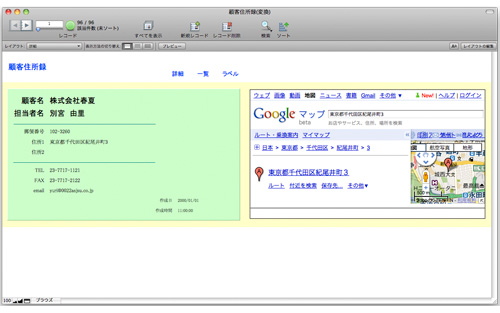 この「レイアウトの編集」モードを利用すると、Webとの連動ができる。例えば、ウインドウ内にWebページを配置する「Webビューアツール」を利用すれば、顧客の住所データをもとにGoogleマップを表示したり、関連する語句をWikipediaで検索した結果を表示したり、といった使い方ができる。レイアウトの自由度も高い。FileMaker Proならではの機能といえるだろう。
