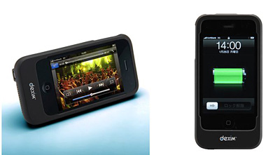 iPhoneの保護ケースと大容量1500mAhの電源補助バッテリを一体化したiPhone専用バッテリケース。通話使用で約5時間、ビデオで約9時間、音楽では約45時間分の電源になる。背面のスイッチボタンでバッテリ残量の確認ができ、長押しでiPhoneへの充電のオン/オフを切り替える。iPhone3Gを装着したままでもデータの同期や充電ができる。