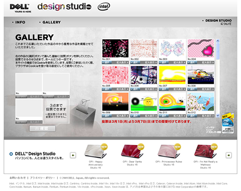 デルは3月1日、「Studioノートパソコン デザインコンテスト」の一般投票を開始した。投票は特設サイト上で受け付け、第1次審査を通過した48作品の中から一人につき3作品まで投票できる。受付期間は3月1日から7日まで。