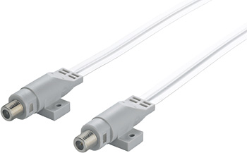 同軸ケーブルをアルミペットテープで挟みこんだ薄さ1.8mmの極薄ケーブルを採用。ドアの隙間やサッシの隙間、ジュウタンの下など、これまでアンテナケーブルを配線できなかった場所にも配線でき、サッシやドアの開け閉めにも干渉しない。長さは45cm。