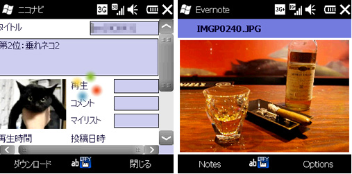 「Windows Marketplace for Mobile」ではなく、従来通りソフトライブラリや通常のウェブサイトで公開しているアプリも多い。Windows Mobile 6.5用のファイルをダウンロードすればいい。最近、日本語に対応して注目を集めている情報集約サービス「Evernote」のWindows Mobile版もある。