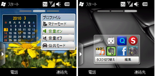 待ち受け画面にカレンダーなどを表示し、タッチ操作で利用できる(左)、ランチャーとして使える「ショートカット」ウィジェット(右)
