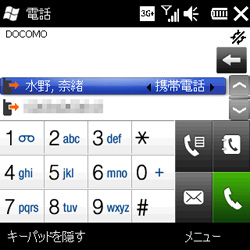 キーパッドで電話番号を入力できる。住所録から選ぶ際は、キーパッドが隠れる
