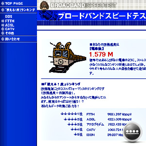 「ブロードバンドスピードテスト」で計測した結果