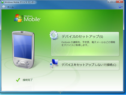 「Windows Mobile デバイス センター」でパートナーシップを設定し、同期する項目を選択する
