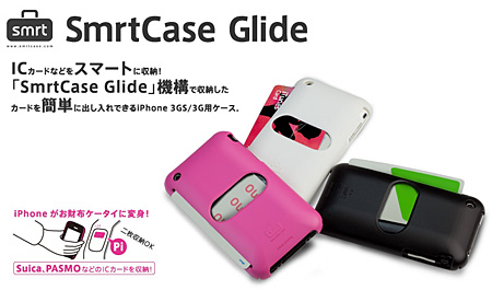 樹脂素材のiPhone 3GS/iPhone 3G用ケース。背面にカードスロットを備え、ICカードが片手で出し入れできる。カードの出し入れの際、iPhoneに傷がつかないように保護する専用フィルムを付属する。