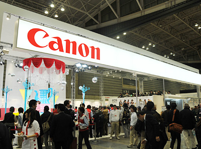 デジタル一眼レフでは、2月に発売した「EOS Kiss」シリーズの最新機種「EOS Kiss X4」を前面に押し出しているほか、上位機種ではプロ用の最新モデル「EOS-1D Mark IV」をアピールしている。
