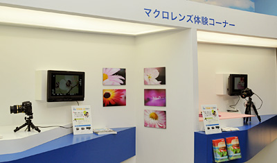 タムロンブースでは、歴代のレンズの展示や、マクロレンズや望遠レンズを試すことができるコーナーなどを設置。「訪れた人に当社のレンズの魅力を満喫してもらうブース作りを目指した」(広報担当者)という。