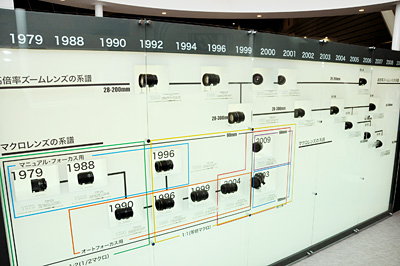 ズームやマクロなどの歴代レンズを並べて展示したコーナーも設置した