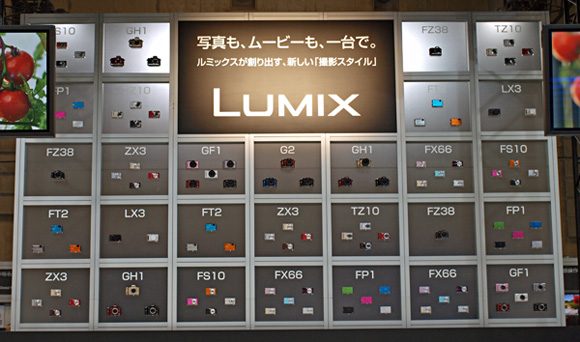 パナソニックのブースでは、壁一面に飾られたデジタルカメラがお出迎え。