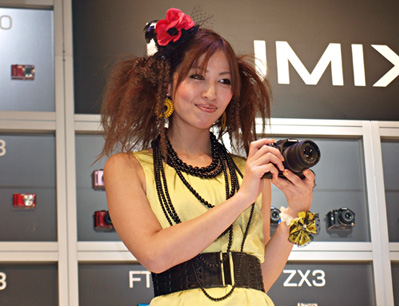 ステージでは、コンパニオンのお姉さんたちが4月28日に発売するタッチパネル搭載のマイクロフォーサーズ機「LUMIX DMC-G2」をにこやかに紹介。