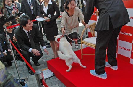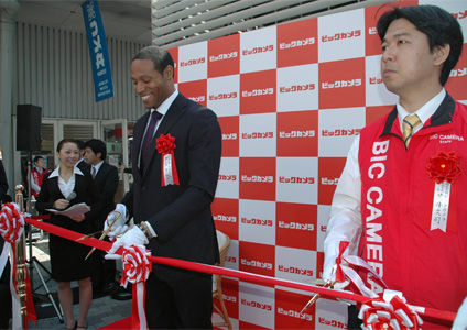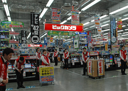 ビックカメラは、3月12日、日本最大級の地デジテレビコーナーやiPhone専用コーナーをもつビックカメラ有楽町店別館をリニューアルオープンした。オープニングセレモニーには、ソフトバンクのCMで活動中の白戸家の「お父さん」と「お兄さん」が登場した。