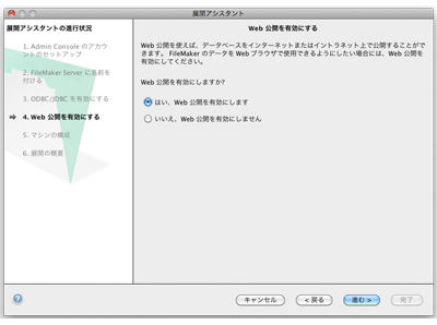 「Web公開」を有効にすると簡単な作業でデータベースをWebに公開できる