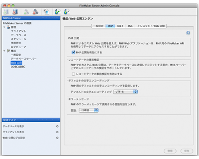 一方、FileMaker Server 10は、「インスタントWeb公開」の機能を装備していないが、代わりに「PHP Web公開」を利用すれば、同レベル以上の機能を発揮する。Mac OS X 10.6(Snow Leopard)の場合、PHP 5.3.0とApache 2.2.13が標準装備するので、FileMaker Server 10だけ利用すれば動作する。ただし、付属のPHPを選択しないと、ファイルメーカーが提供するインターフェイス「FileMaker API for PHP」をインストールする必要がある。したがって、初期設定「展開アシスタント」のPHPに関する項目では「はい」を選ぶほうが無難だ。