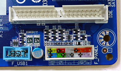 対応端子ごとに色分けされたパネルコネクタ。自作のツボがわかるギガバイトならではの配慮