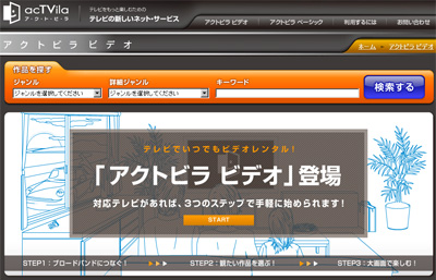 動画コンテンツ有料配信サービス「アクトビラ ビデオ」のスタートサイト