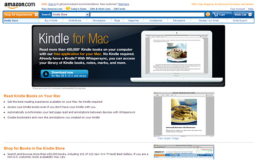 米アマゾン、Kindle対応書籍をMacで読める無料アプリケーション