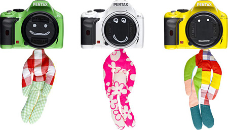 「カメラーマン」は笑顔を書いたレンズキャップの「顔」と、布製の「体」で構成するアクセサリ。「顔」はフィルター径が52mmのデジタル一眼レフ用の交換レンズに取り付けることができる。「体」はカメラの三脚ネジ穴に取り付ける。コンパクトデジタルカメラは「体」のみを付けることができる。前から見ると、カメラが「カメラーマン」に見える仕組みだ。