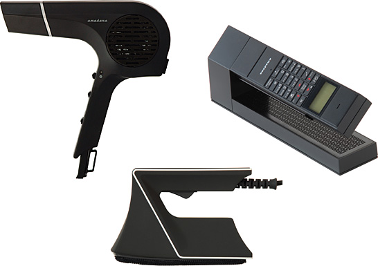 (左から)「amadana」のドライヤー、デジタルコードレス電話機、デオドラントスチーマー