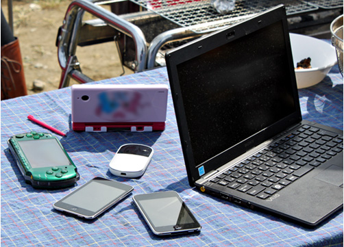 複数のデバイスを同時にネットに接続できるのも、「Pocket WiFi」の大きなメリット。USB通信アダプタなどは、一つのデバイスしか接続できない。「Pocket WiFi」なら、イー・モバイルの1回線だけで5台までのデバイスをネットに繋げられる。例えば、友人同士で遊んでいるとき、「Pocket WiFi」があれば全員のゲーム機が無線LANでつながる。会議室に持ち込めば、自分だけでなく周囲の人のPCでもネットを利用できる。