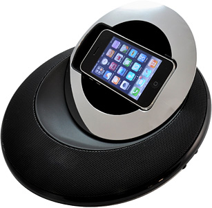 リンクス、iPhone/iPod touch対応のUFO型スピーカー、用途に合わせて角度調節