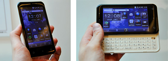 スマートフォン「IS01」(左)と「IS02」を発表