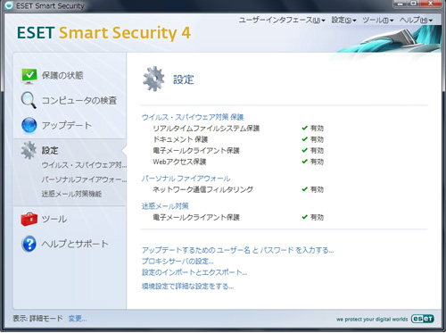 これまでの「ESET」シリーズは、CPUへの負担が少なく、軽快な動作感に定評があった。最新の「ESET Smart Security 4」もその特徴に変わりはない。定義ファイルのアップデート時や起動時の検査でややもたつく感じはあるが、いったん動きだしてしまえば、インストールしていることを忘れるほど軽快に動作する。