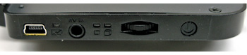 ダイヤル(中央)を長押しして2Dと3Dの表示を切り替える。AV端子(左から2番目)には、付属のコンポジット端子付きケーブルを接続する