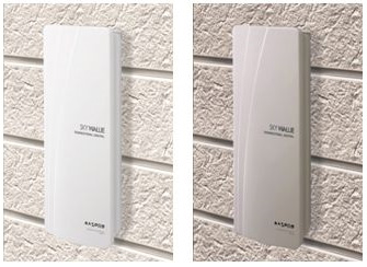 本体ケースには、耐候性にすぐれたASA樹脂を採用。薄型なので、受信面に積雪しにくい。カラーはウォームホワイトとベージュ。本体サイズは高さ670×幅270×奥行き252mm、重さ約3.7kg。