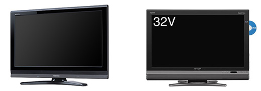 4月から対象外になったテレビの一例(左から、東芝の「REGZA 32A900S」、シャープの「AQUOS LC-32DX2-B」)