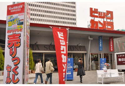 4月からエコポイント対象外になるテレビには、「買うなら今! 3月31日まで対象 エコポイント対象製品」と記し、期限が間近に迫っていることを告知。配布チラシや屋外の看板など、来店者の目に留まりやすい形でアピールした。この取り組みが功を奏し、4月2日現在、有楽町店本館・別館合わせても、旧基準を満たす製品の在庫は1割にも満たない状態だという。