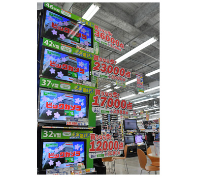 駆け込み需要の盛り上がりのなかで、家電エコポイント制度を正しく把握していないユーザーも多かったという。例えば、「ポイントは何と交換できるのか」といった質問のほか、「制度そのものが終わってしまうのか」「取得したエコポイントは、ビックカメラのポイントになるのか」などといった問い合わせを受けたことがあるという。売り場では、今回の制度の一部改定は、エコポイントを改めてユーザーに周知するきっかけになると捉えている。