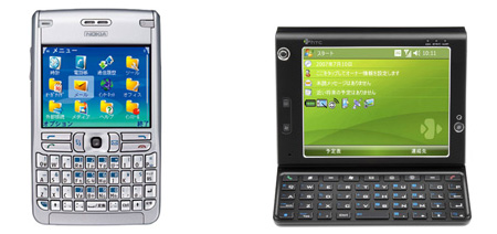 (左から、06年12月発売のノキア・ジャパン製Nokia E61、07年10月発売のHTC製HTC Advantage X7501)