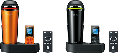「“ウォークマン”ドックスピーカー」は、タンブラーのような形状で、ドックスタイルとマグスタイルの2通りの使い方ができる「RDP-NWV500」と、据え置き型の「RDP-NW1」をラインアップ。カラーは、「RDP-NWV500」はブラックとオレンジ、「RDP-NW1」はブラックとホワイトを用意する。