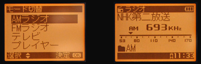 肝心の、ラジオのリスニングのしやすさについてはどうだろうか。ラジオ番組を聴くには、液晶画面の左下にあるモードボタンを押して、「FM」「AM」「テレビ」「プレーヤー」の四つから選択する。「プレーヤー」とは、予約録音した番組や、PC経由で内蔵メモリに保存した音楽などのファイルを再生するときに使うモードだ。
