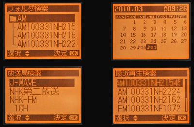希望するファイルを見つけるための検索機能が豊富なのもいい。「フォルダ」「カレンダー」「放送局」「最近再生/録音」「未再生」といった複数の方法から選べる。それぞれ使ったところ、ファイルを作成した日付で探せる「カレンダー」と、過去に録音した放送局から選ぶ「放送局」検索が便利だと感じた。