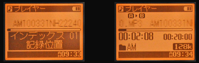 このインデックスの場所は、その箇所にくると「インデックス記録位置」という文字を点滅して表示する。ただ、これだけだと、ファイル全体のどのあたりにインデックスを付けたのかがわからない。リスニング画面のタイムライン上に旗を立てるなど、ひと目でわかる印がほしいと思った。