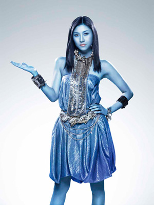 全身をブルーのファンデーションで塗った菊川怜さん